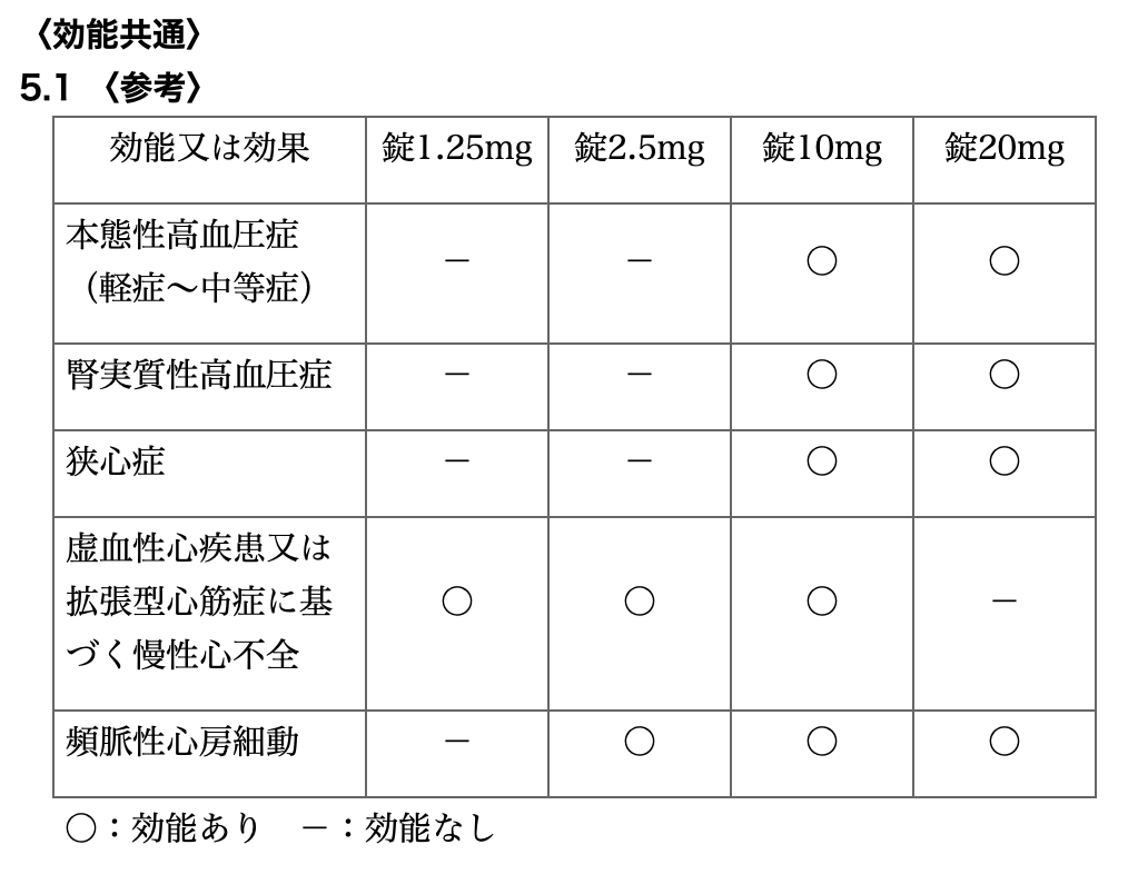 アーチスト錠1.25mg/アーチスト錠2.5mg/アーチスト錠10mg/アーチスト錠20mg
