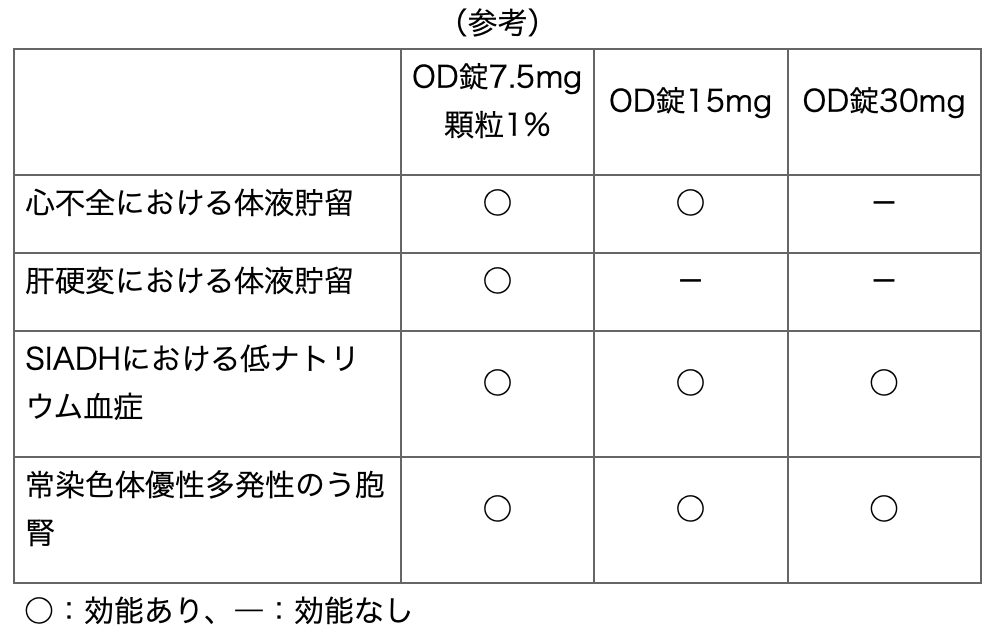 4. 効能又は効果〈サムスカOD錠7.5mg、サムスカ顆粒1%〉