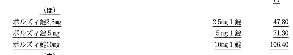 ボルズィ錠2.5mg/ボルズィ錠5mg/ボルズィ錠10mg