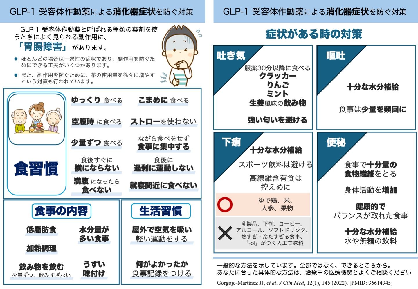 Gorgojo-Martínez JJ, Mezquita-Raya P, Carretero-Gómez J, Castro A, Cebrián-Cuenca A, de Torres-Sánchez A, García-de-Lucas MD, Núñez J, Obaya JC, Soler MJ, Górriz JL, Rubio-Herrera MÁ. Clinical Recommendations to Manage Gastrointestinal Adverse Events in Patients Treated with Glp-1 Receptor Agonists: A Multidisciplinary Expert Consensus. J Clin Med. 2022 Dec 24;12(1):145. doi: 10.3390/jcm12010145. PMID: 36614945; PMCID: PMC9821052.