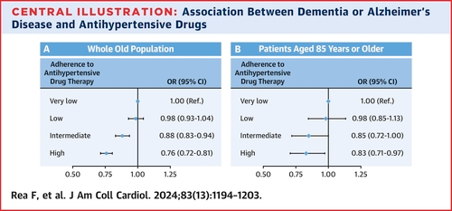 降圧薬治療への高い遵守は、年齢・性別・基礎疾患に関係なく認知症リスクの低下と関連していた。高齢でも治療効果が持続するが、85歳以上ではやや効果が弱まる可能性も示唆された。観察研究だが、多くの感度分析によって結果の頑健性が支持された。