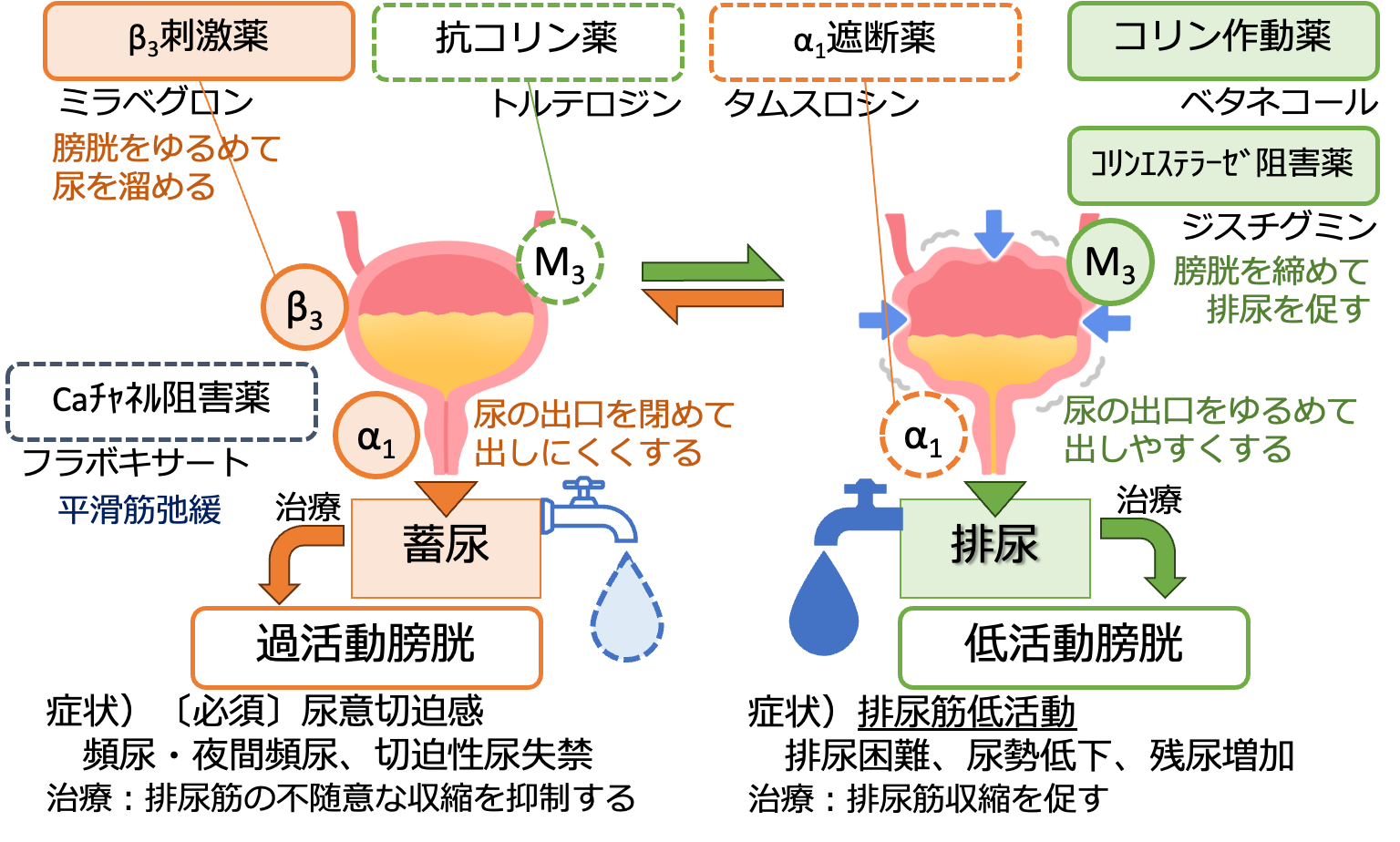 - 排尿筋が収縮する →尿を押し出す