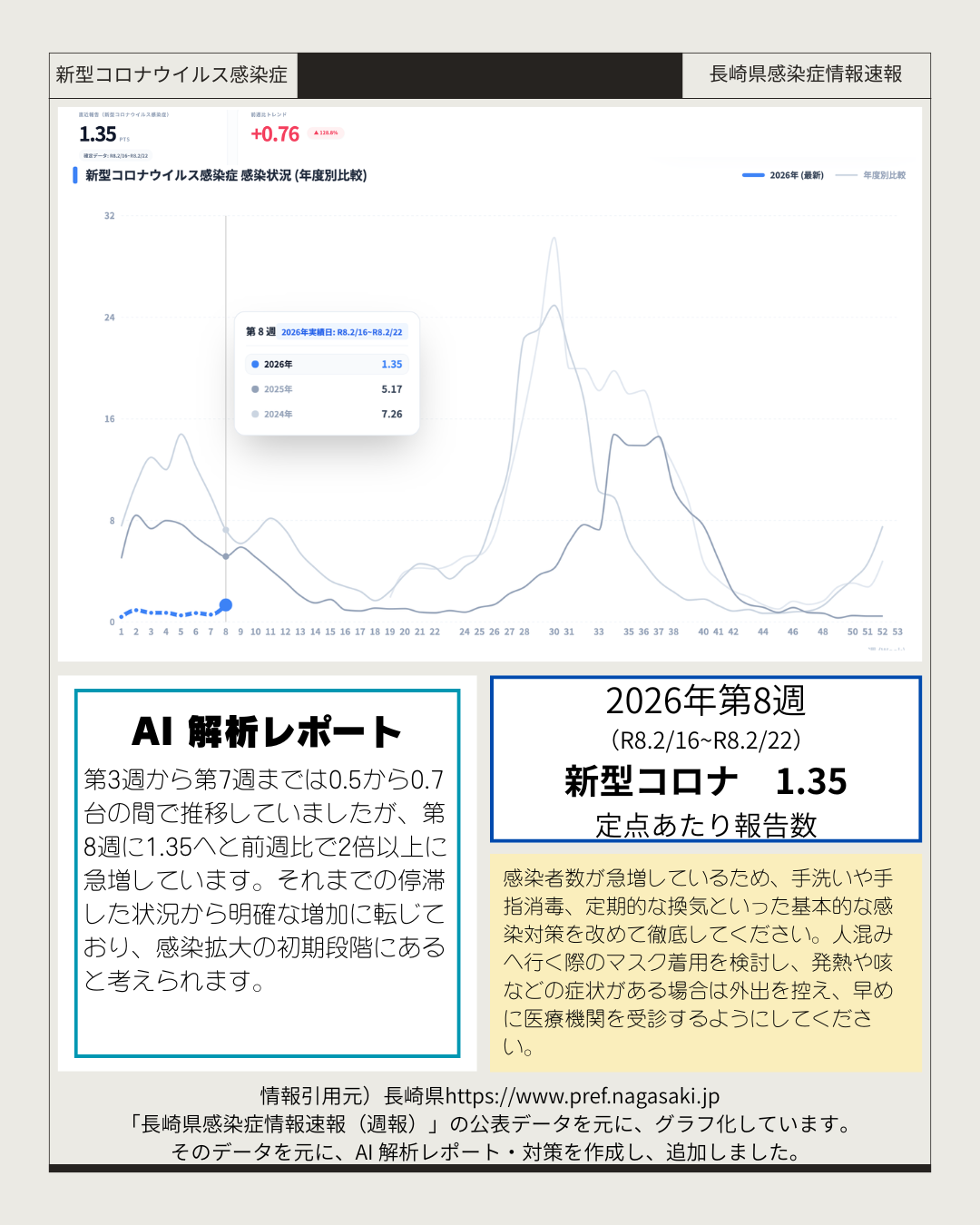 長崎県感染症流行:2026年第8週(2026.2.16〜2026.2.22)